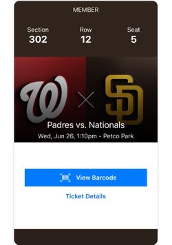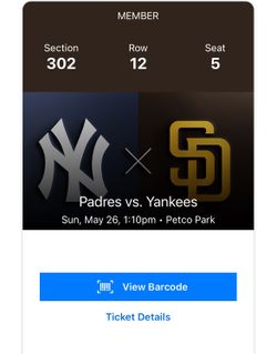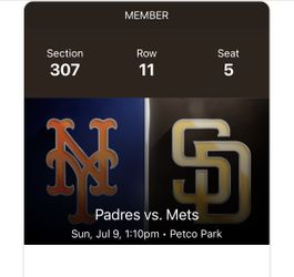 Padres Vs Mets Ticket$45Chula Vista, CA