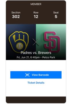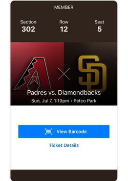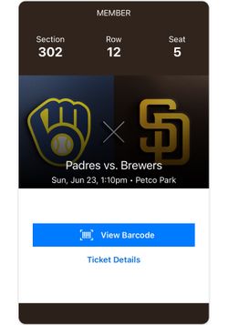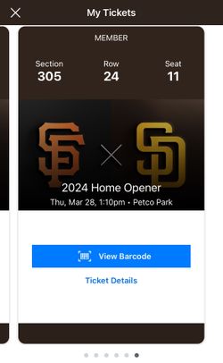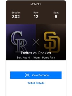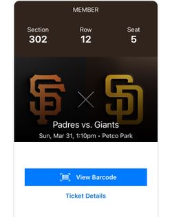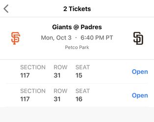 Padres Vs Giants Tickets$120Chula Vista, CA