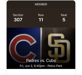 Padres Vs Cubs Ticket$40Chula Vista, CA