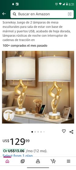 Par De Lámparas De Metal, Doradas Con Puerto USB, Y Cargador.$80Somerton, AZ