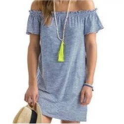 Vineyard Vines blue and white stripe off the shoulder dress$25Naples, ME