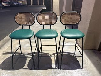 Set of 3 Bar Stools Faux Leather Bar Height Bar Stools with Rattan Back/Green$75Corona, CA
