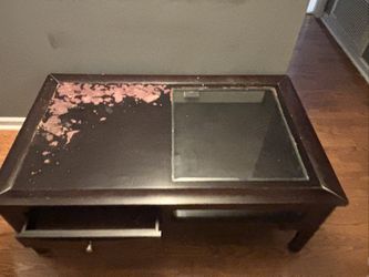 πͺ Coffee Table w/ Glass Insert + Storage Drawer β Needs Refinish (Great Project Piece!)$15Atlanta, GA