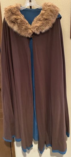 Brown Cape w/Removable Fur Collar, Blue Lining & Blue Hood,Size XL 50” Tall.$115Gig Harbor, WA