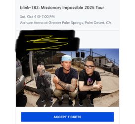 Blink 182 Tickets$300Hacienda Heights, CA
