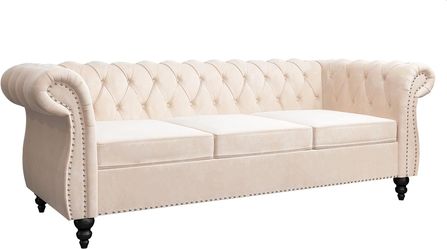 Chesterfield Sofa Velvet, Modern Tufted Couch 3 Seater with Rolled Arms and Nailhead for Living Room, Bedroom, Office, Apartment (Beige)$190Hacienda Heights, CA