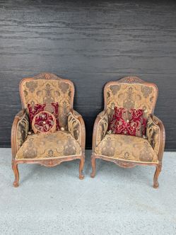 Beautiful Pair of Vintage French Provincial Louis XV–Style Carved Wood Armchairs$380Corona, CA