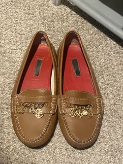 CH Carolina Herrera Womens size 39 Brown Leather Logo Charm Detail Loafers$125Rancho Cucamonga, CA