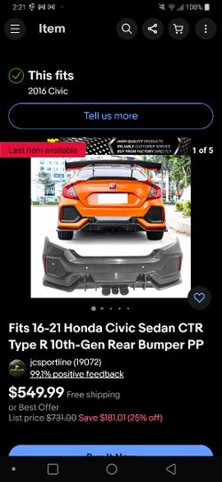 Civic Rear Bumper Parts$50Bakersfield, CA