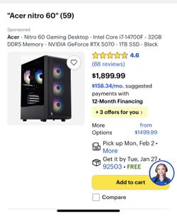 New Acer Nitro 60 Gaming PC I7 14700F Full Size RTX 5070 32GB DDR 5 And 1TB SSD$1,450Riverside, CA