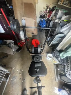 Bench Press + Weights + Metal Curl Up Bar $180Santa Ana, CA