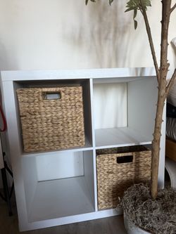 White Storage Cube Unit with 2 Woven Baskets$50San Diego, CA