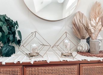 2 Urban Outfitters Gold Geometric Boho Pillar Candle Holders MCM minimalist decor$35Lakeland, FL