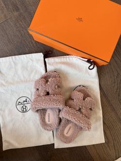 Hermes CHYPRE Woolskin Shearling Sandals Bois De Santal, 35.5 Dusty Rose Pink$1,195Monrovia, CA
