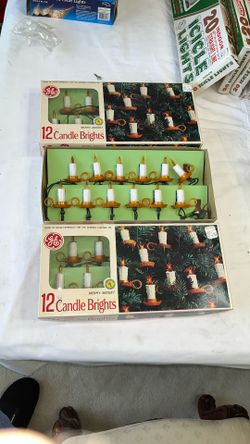 Vintage Three Lots Of Christmas Lights lights of 12 candle bright called Mary midget. They are candle holders and candle Christmas tree lights.$30Murrieta, CA