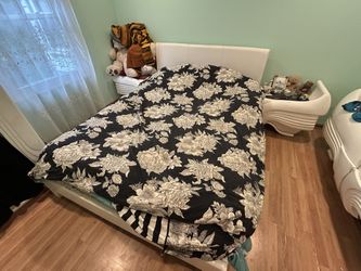 Queen White Bed Frame with Floral Bedding$300Buffalo Grove, IL