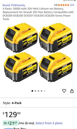 4 Pack 20 Volt Batteries Dewalt Tools$100Riverside, CA