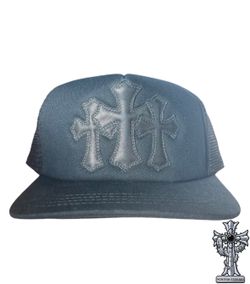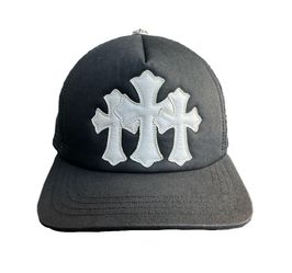 CHROME HEARTS WHITE LEATHER CEMETERY CROSS PATCH ON BLACK TRUCKER HAT$600Gilbert, AZ