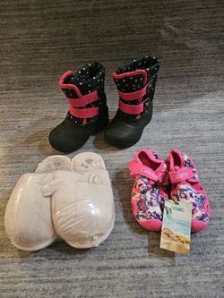 Toddler Winter Boots, Fuzzy Slippers, Waters shoes, Bundle take all for $20
