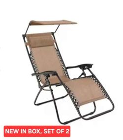 Style Selections Steel Frame Stationary Zero Gravity Chair(s) with BEIGE Sling Seat, Set of 2 NEW IN BOX.