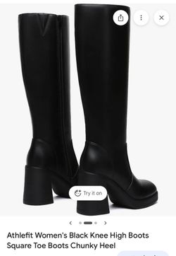ATHLEFIT WOMEN.s Black Knee High Boots Square Toe Boots Chunky Heel $30Lodi, CA
