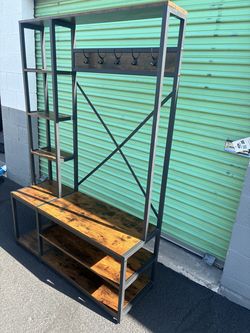 Industrial Entryway Hall Tree / Coat Rack with Bench & Shelving – Rustic Wood + Metal Frame$125Phoenix, AZ