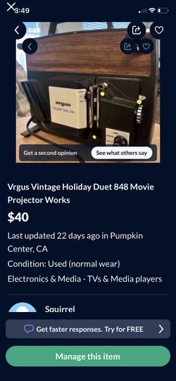 vrgus vintage holliday duet 848 movie projector works$30Pumpkin Center, CA