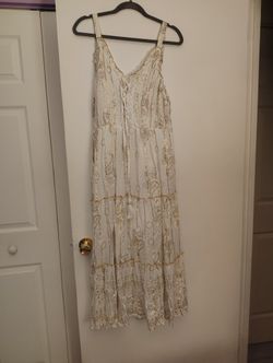 Magic Anthropologie Maxi Dress Ivory LurexGold Paisley Boho ShortSleeve 212$25Newark, NJ