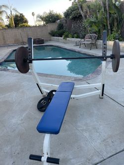 Flat Bench, Rack , Olympic Bar And Weights💪🏼$360Upland, CA