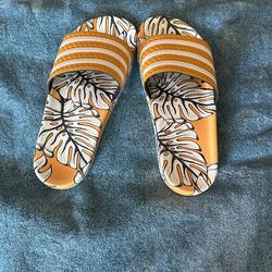 Adidas Adilette Slide Sandals Size 8 White Yellow Tropical Palm Leaf Monstera$20North Las Vegas, NV