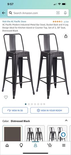 AC Pacific Modern Industrial Metal Bar Stool, Bucket Back and 4 Leg Design Ideal for Kitchen Island or Counter Top, Set of 2, 30" Seat, Distressed Bla$100Santa Monica, CA