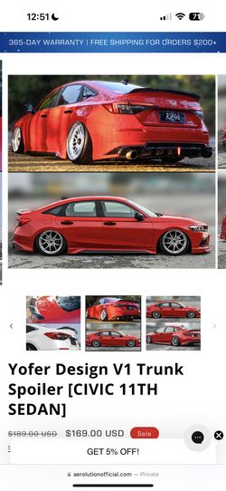 Yofer V1 22-25 Civic Sedan Trunk Spoiler $50Riverside, CA