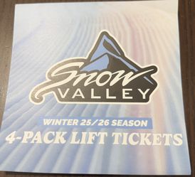 Snow Valley 4 Pack Lift Tickets $299Arcadia, CA