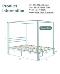 Like New Green Metal Canopy Platform Bed Frame/Mattress Foundation with Wood Slats Support/No Box Spring Needed/Easy Assembly, Queen$150Arcadia, CA