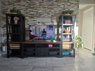 Dark Oak Wood TV Entertainment Center, Can Fit 65" , Comes With 2 Stand Alone Shelf Tower, Asking $1,000 OBO$1,000Surprise, AZ