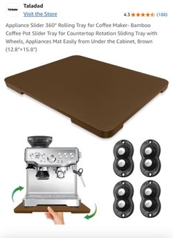 Appliance Slider 360° Rolling Tray For Coffee Maker- Bamboo Coffee Pot Slider Tray For Countertop Rotation Sliding Tray With Wheels, Appliances Mat Ea$15Phoenix, AZ