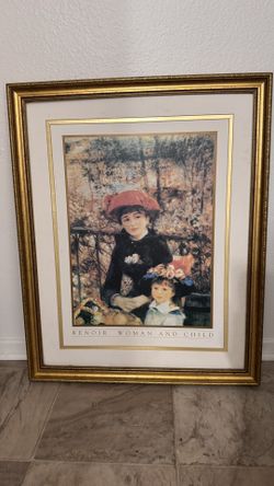 Vintage Woman And Child Sur La Terrasse 1970's Print Gold Framed$10Manhattan Beach, CA