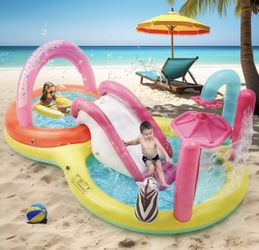 Inflatable Kiddie Pool with Water Slide, 110" x 66" x40" Play Center Fun Summer Water Toys for Kids$40Tulare, CA