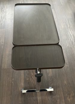 Adjustable Overbed Table on Wheels – Dark Wood Top (45 lb Capacity) $50Renton, WA