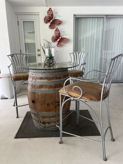 Wine Barrel Glass Top Table With 3 Iron Stools$290Hialeah, FL