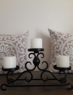 Spanish Scroll Three Tier Tiered Black Heavy Iron Metal Candelabra Candle Holder with 3 New Real Wax Candles$40Palm Desert, CA