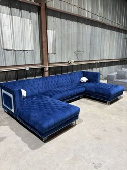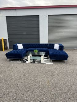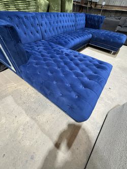 Beautiful Double Chaise Blue Velvet Sectional Couch FREE DELIVERY $850$0Houston, TX