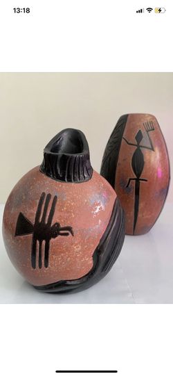 2 Vintage Chulucanas Peru Pottery Art Vases Handmade/Painted By Ramiro Rodriguez Signed$30Liverpool, NY