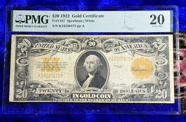 1922 $20 Gold Certificate PMG Vf20$320Hamtramck, MI