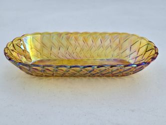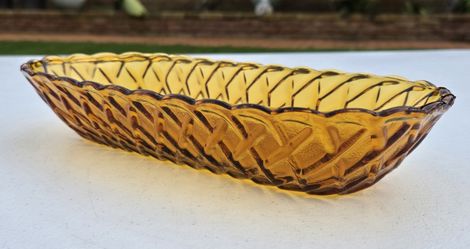 Vintage INDIANA Glass Amber Carnival Basket Weave Oval Dish$14Monterey Park, CA