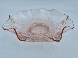 Antique Fenton Dragon and Lotus Pink Depression Glass Ruffled Bowl 8.75"$30Rosemead, CA