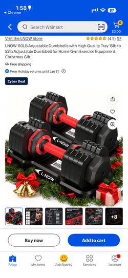 LNOW 110LB Adjustable Dumbbells with High Quality Tray 15lb to 55lb Adjustable Dumbbell for Home Gym Exercise Equipment, ‌‌Christmas Gift$99Las Vegas, NV