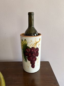Vintage Pier 1 Hand-Painted Terracotta Glazed White w/ Grape Wine Cooler / utensil holder / vase$28Santa Monica, CA