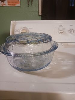 Vintage Libbey 3 In 1 Orchard Fruit Clear Blue Glass 3 Qt Round Casserole Baking Dish, Pie Plate Lid. $25San Antonio, TX