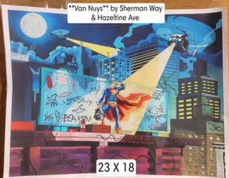 limited edition " #5 SIGNED " giclée print titled It's a Bird! It's a Plane! Dude is he Tagging? by the artist known as Priest Corp. $503Los Angeles, CA